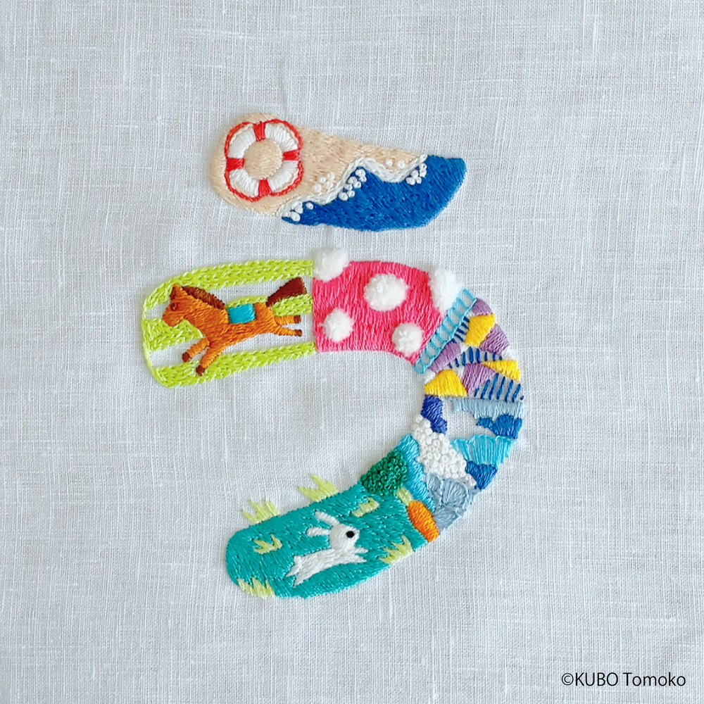 Japoncadaki üç temel yazı sisteminden biri olan Hiragana, her biri bir heceyi temsil eden 46 karakterden oluşuyor. Bu fonetik sistem, Japonca öğrenmeye yeni başlayanlar için genellikle ilk aşamayı oluşturuyor. İllüstratör ve nakış sanatçısı Tomoko Kubo için bu yazı sistemi, aynı zamanda eğlenceli dil öğrenme araçları işlevi gören bir dizi nakış çalışmasına ilham kaynağı oldu. Kendisi, bu temel yapıtaşlarını yalnızca birer öğrenme aracı olmaktan çıkartıyor ve sanatsal ifadeye dönüştürüyor.