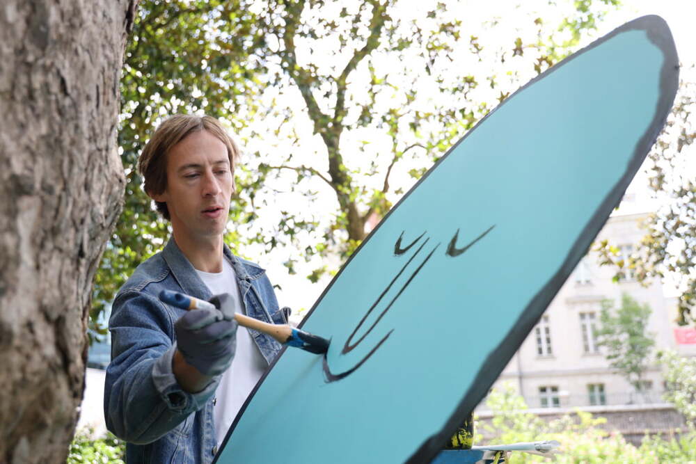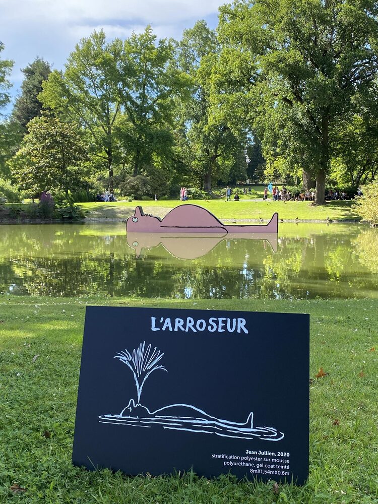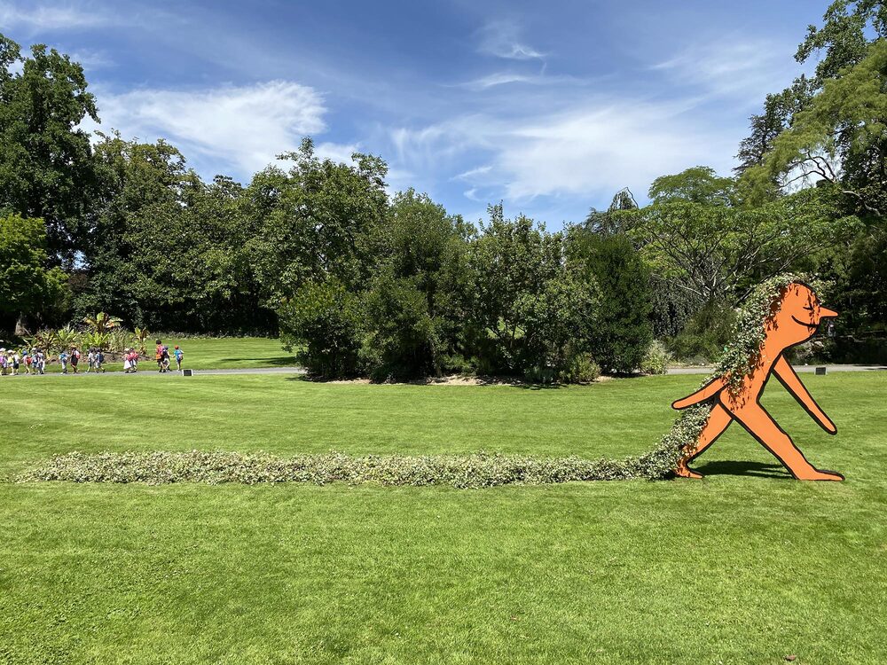 Jean Jullien’in neşeli karakterleri, Nantes’te Jardin des Plantes adlı botanik bahçesinde, doğayla iç içe olmanın tadını çıkarıyor. Kimi sırt üstü yüzüyor, kimi çimleri tırmıklıyor, kimi yürüyüş yapıyor, kimi ise ağaçlara sarılıyor. Jullien bu renkli yerleştirmeler, Filili Viridi adlı yeni bir sergi kapsamında yaratmış. Heykeller büyük boyutlu. Örnek vermek gerekirse yüzen karakter, 8×1,54×0,6 metre.