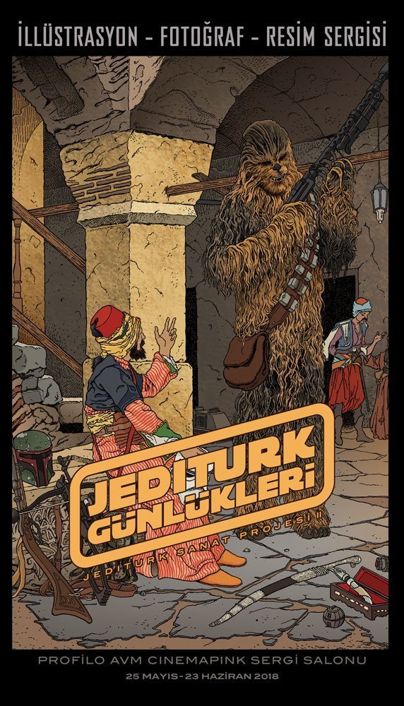 Jediturk grubu geçtiğimiz Aralık ayında “JEDITURK GÜNLÜKLERİ” isminde bir sanat projesi yayınlamıştı. Burada da farklı sanatçıların çizdiği Star Wars resimleri sergilenmişti. Han Solo filminin vizyona girişiyle birlikte hayran grubu bu sefer serginin ikincisini gerçekleştiriyor. “JEDITURK GÜNLÜKLERİ II SERGİSİ” sanat projesi kapsamın da 13 sanatçının katkılarıyla illüstrasyon – resim ve fotoğraf çalışmaları Star Wars hayranlarıyla buluşuyor. Sergi Cinema Pink sinemaları kompleksinde yer alan salonda 25 Mayıs / 23 Haziran 2018 tarihleri arasında ziyaret edilebilecek.