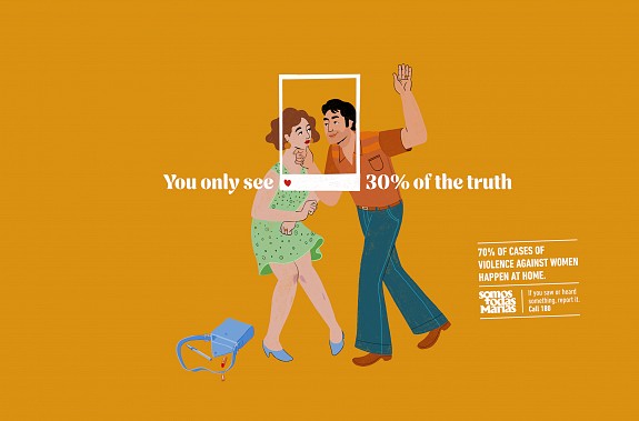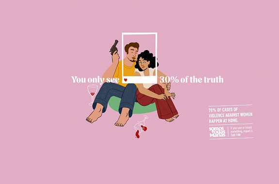 Çünkü istatistikler Brezilya’da kadına yönelen şiddetin %70’inin ev içinde gerçekleştiğini ve bu suçun faillerinin genelde eş ya da partnerler olduğunu ortaya koyuyor. İşte bu veriden yola çıkan kampanya görsellerinde Instagram’da arz-ı endam eden ideal çiftler işaret edilerek ‘Bu tablo gördüklerinizin yalnızca %30’unu yansıtıyor’ metni ile sunuluyor. Metnin vermek istediği mesajlardan biri kadınlara yönelen şiddet tehdidinin genelde en yakınları olan eş ve partnerlerden gelmesi iken diğer önemli mesaj da herkesin sosyal medyadaki sanal gerçekliğe çok tutunmadan yakınlarının esenliğini ve mental durumuna karşı farkında olması gerektiği.