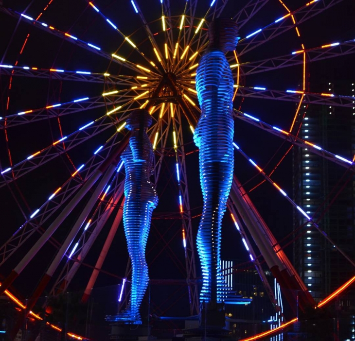 Azeri bir genç olan Ali ve Gürcü prenses Nino’yu temsil eden, bir kadın ve bir erkek figüründen oluşan 8 metre yüksekliğindeki 7 tonluk çelik heykel Gürcü sanatçı Tamar Kvesitadze’nin imzasını taşıyor. Heykel, özel aydınlatmasıyla her akşam saat 7’de hareketleniyor ve iki figür yavaşça birbirlerine yaklaşıyor.