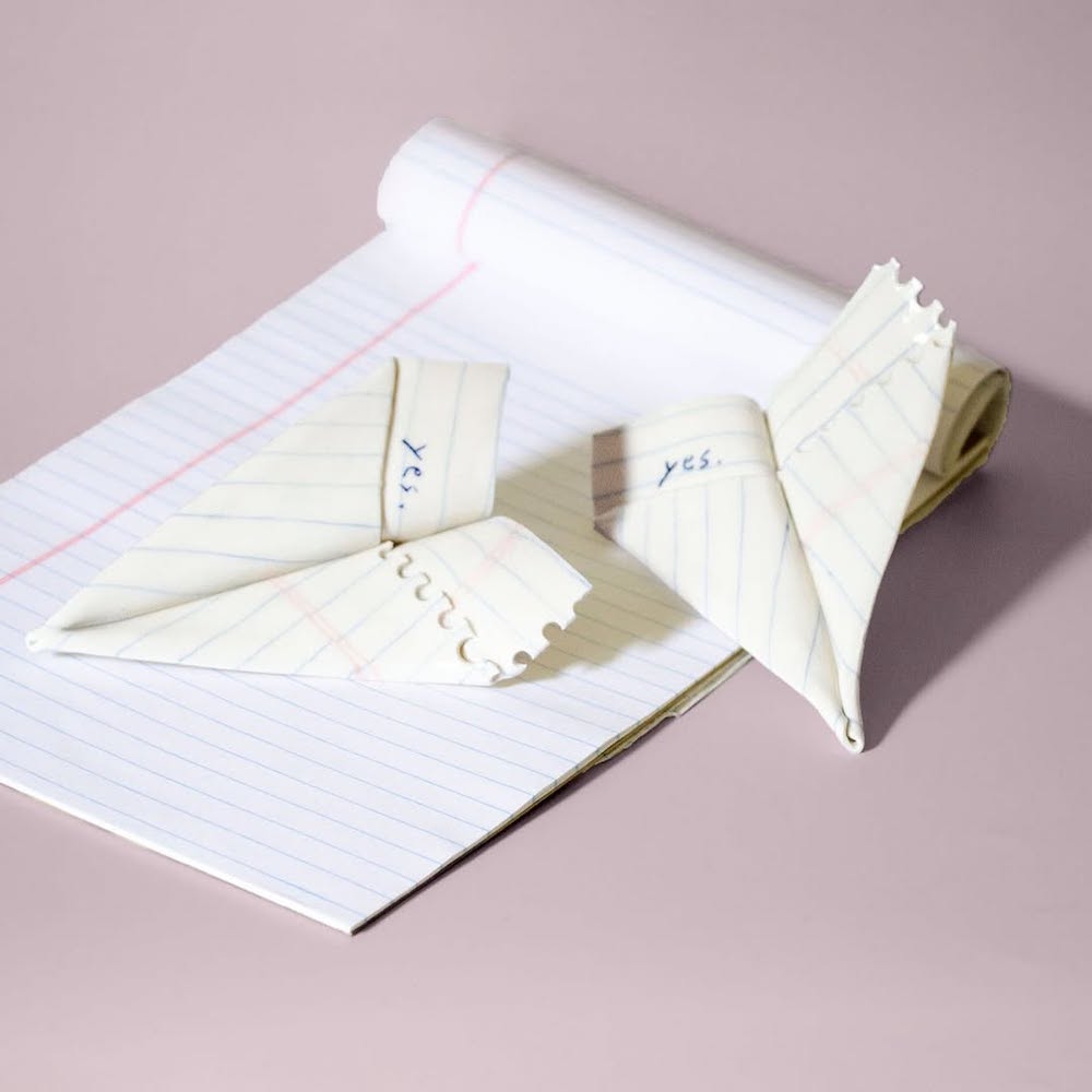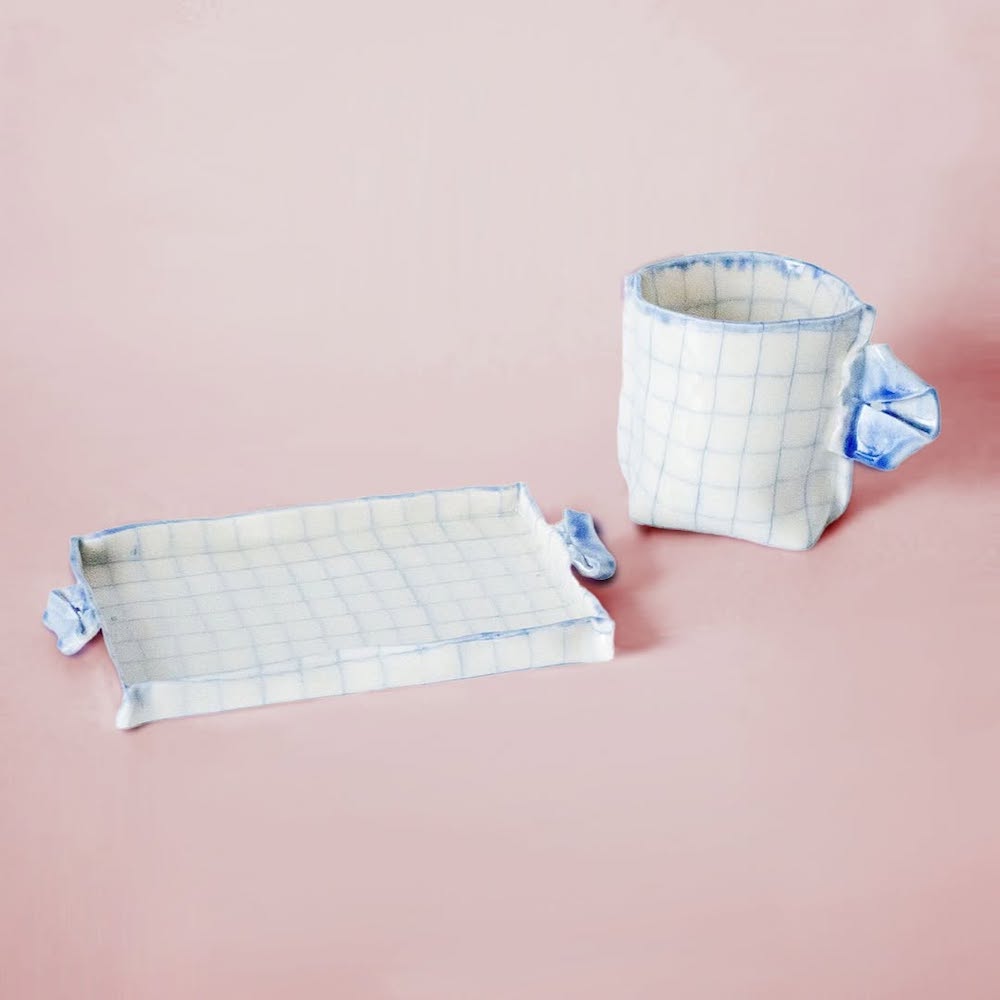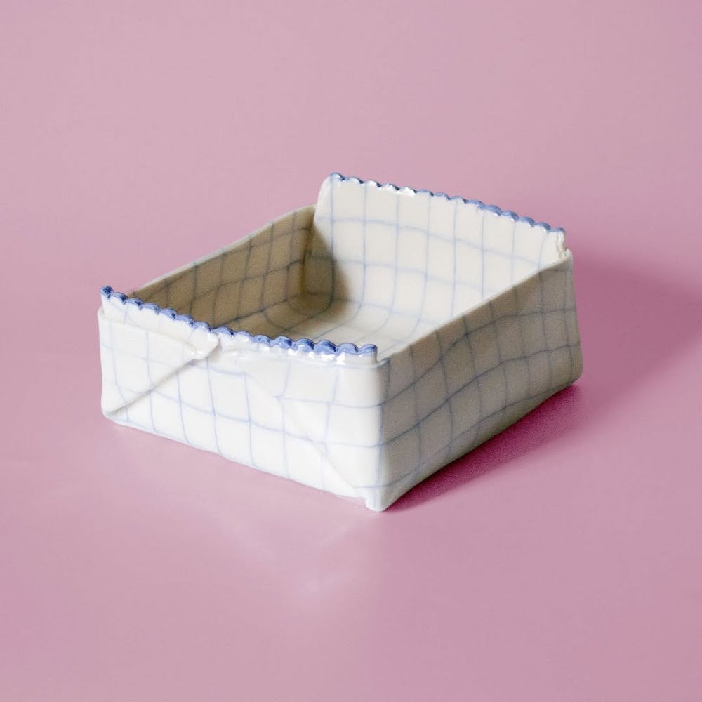 Saori Matsushita, Seattle’daki stüdyosunda narin porselen tabakalarını kağıttan yapılmış gibi görünen kupalara, vazolara ve heykellere dönüştürüyor. Çoğu seramik nesne, klasik okul not defterlerindeki mavi çizgileri taşıyor. Dolayısıyla defter kağıdından yapılmış nesneler gibi görünüyorlar. Sanatçı ayrıca kumaştan yapılmış gibi görünen gömlek ve peçete gibi nesneler de üretiyor.