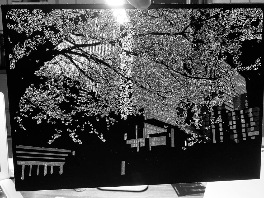 Hiroki Saito, kirigami sanatıyla lise yıllarında tanışmış. Son 8 yılda, bu sanatta fark edilir derecede ustalık geliştirdiği bambaşka bir noktaya gelmiş. O kadar titiz ve ileri seviyede ki şehirlerden gece manzaralarını tasvir ettiği işlerini ilk bakışta fotoğraf zannediyorsunuz. Sanatçı tamamlanması birkaç ay sürebilen eserlerinin yapım sürecine dair detayları Twitter hesabı üzerinden paylaşıyor.