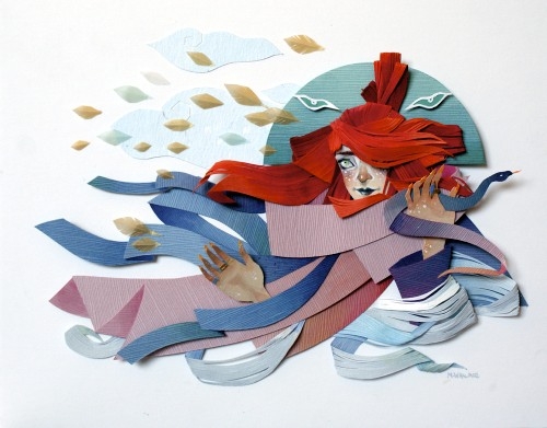 Morgana Wallace, duvar kağıdı gibi karakteristik özelliği olan materyalleri kullanarak masalsı kolajlar üretiyor. Genellikle temel malzeme olarak Japon keten kağıdı kullanan sanatçı, karakterlerinin sunduğu keskin çizgiyi bu sayede rahatlıkla karşı tarafa aktarabiliyor.