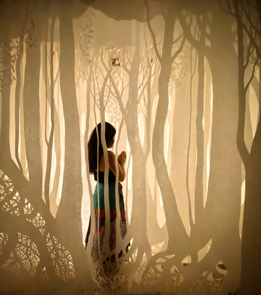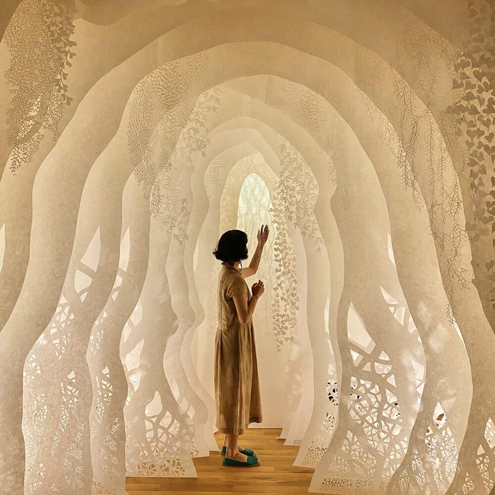 Ayumi Shibata: “Görünmez ‘Kami’ ruhları çeşitli nesne ve olaylarda, mekanlarda, evlerimizde ve bedenlerimizde ikamet ediyor. Tekniğimi, bu hayatta doğdukları için Kami ruhlarına minnettarlığımı ifade etmek için kullanıyorum. Kestiğim her kağıt parçası bir duadır.” şeklinde açıklıyor çalışmalarını.
