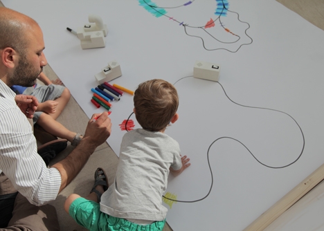 Japon sanatçı ve tasarımcı Yuri Suzuki’nin Looks Like Music projesinde küçük robotlar kağıtlara çizilmiş siyah çizgiler üzerindeki renkli karalamaları müziğe çeviriyor.