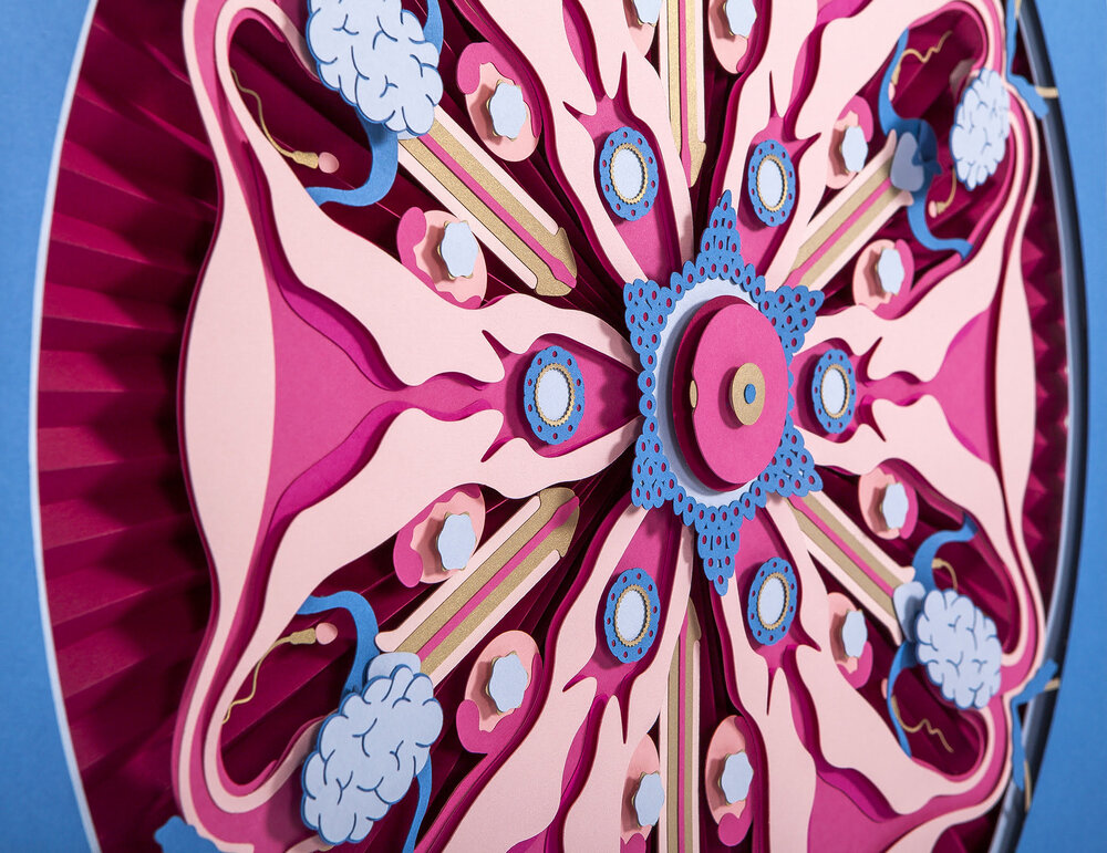 Murallardan tutun da kağıt sanatına, heykel sanatına ve kum sanatına kadar pek çok sanat pratiğinde mandalaların ne kadar ilham verici olduğunu gördük. Kağıt sanatçısı Julie Wilkinson da kağıttan yaptığı anatomik parçaları mandala estetiğiyle birleştirerek yeni bir alan açmış kendine ve Manifestation isimli seriyi hazırlamış.