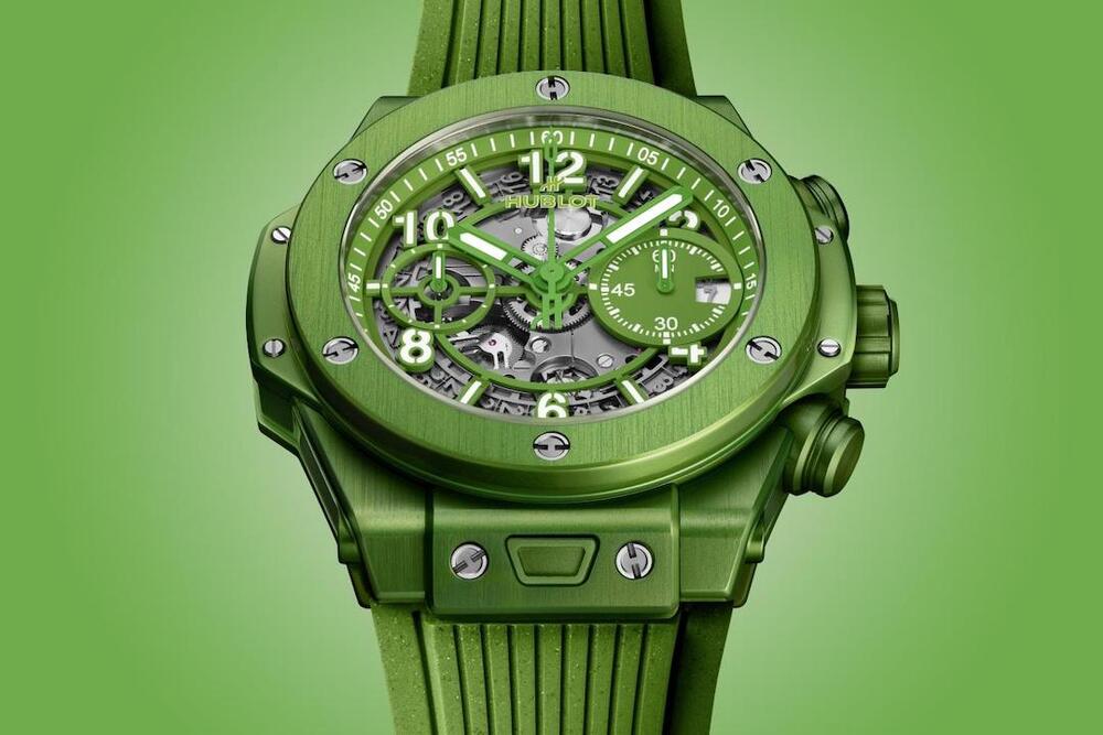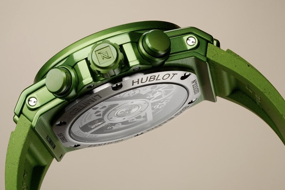 Tasarımını ve parlak yeşil tonlarındaki rengini Master Origins Peru Organik Nespresso serisinden alan saatin yanında, kronometresinin hemen üstünde de Nespresso logosu bulunuyor. Daha 80’li yıllarda kadrajını başka markalara açarak Domino’s, Coca-Cola gibi iş birlikleri ile vakti zamanında lüks aksesuar kategorisinde şaşkınlık yaratan Rolex’in ardından Nespresso & Hublot ortaklığı şaşırtıcı olmayabilir ancak üzerinde fazla durulmayan bir noktaya işaret ettiği için hayli dikkat çekici.