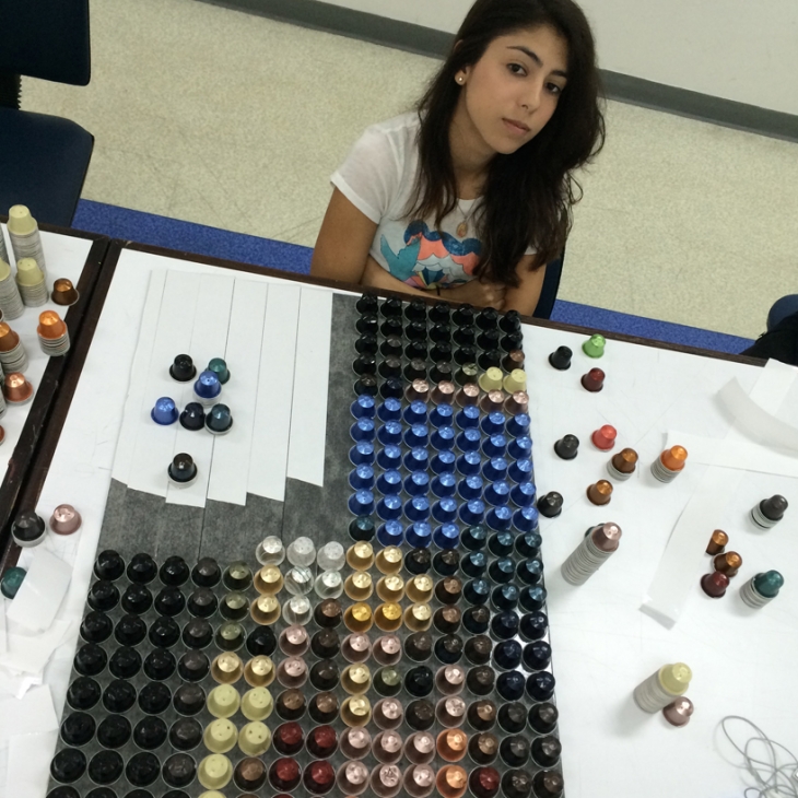 Dubai’deki Amerikan Üniversitesi (AUD) profesörlerinden Michael Rice, bir Cafe’nin önünden geçerken küçük, renkli kahve kapsüllerini görüyor ve piksel görünümleri dikkatini çekiyor. Biraz sohbetten sonra da Cafe sahipleri, memnuniyetle kullanılmış kapsülleri kendisine veriyorlar ve Rice’ın kafasındaki proje için ilk adım atılmış oluyor.