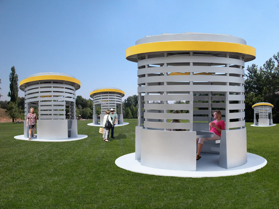 Michael Jantzen‘in “Cool Retreats” adlı projesi, bu gerçekliğe doğrudan bir yanıt olarak geliştirilmiş. Güneş enerjisiyle çalışan dört farklı kamusal alan tasarımından oluşan proje, ihtiyaç duyan herkes için ücretsiz serinleme, gölge ve dinlenme alanı sağlamayı amaçlıyor. Özellikle kamusal parklar ve açık alanlar hedeflenirken, en çok ihtiyaç duyanların çoğu zaman en az seçeneğe sahip olduğu kentler öncelik olarak belirleniyor.