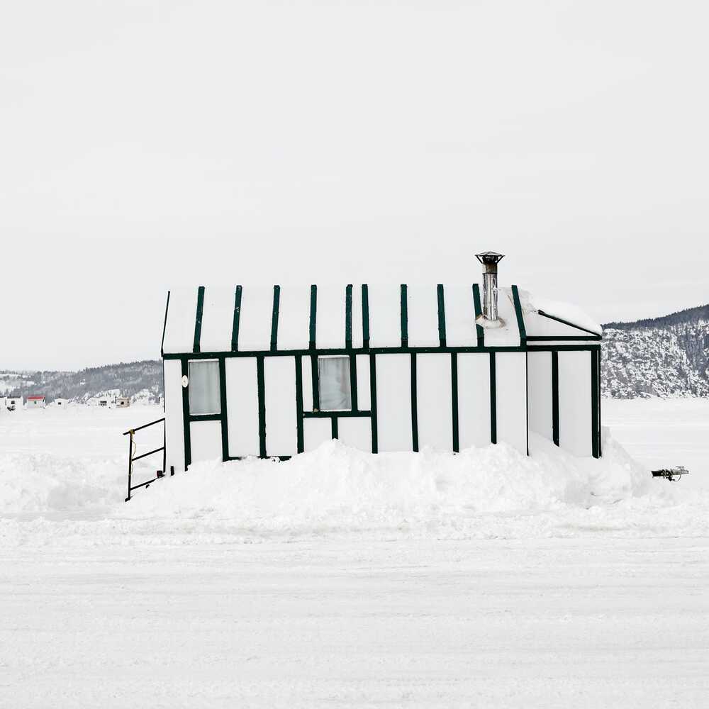 Yüzlerce fotoğraftan oluşan Ice Hut serisisi, direklerin etrafına sarılan plastik brandalardan tek kişilik barakalara ve nispeten sofistike mini yapılara kadar mevsimlik topluluklara ait çeşitli malzeme ve tasarım seçeneklerini ortaya koyuyor. Johnson, her kulübenin bireysel kişiliğini, sakinlerinin kadraja girmediği kare formatta belgelemiş. Bir araçla buz üzerinde çekilebilecek kadar küçük olan bazı versiyonlar; birkaç kişiyi alabilecek yeterli alanıa, küçük bir sobayı ve temel erzakları barındırıyor. Ayrıca kulübelerin renkleri ve dış cephe süslemeleri de buz üzerinde bir açık hava sergisini aratmayacak türden.