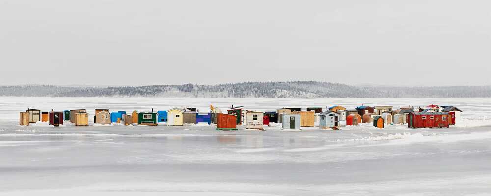 Tuval gibi uzanan bembeyaz kar ve buz kütlesi üzerinde, çoğu buluntu malzemelerden yapılmış renkli el yapımı yapılardan oluşan bu geçici topluluklar, Toronto merkezli mimari fotoğrafçı Richard Johnson’ın (1957-2021) dikkatini çekmiş. Sanatsal yapılardan geçici yapılara kadar yüzlerce yapıyı fotoğraflayan Richard Johnson, bu yapıları fotoğrafladığı dönemde küçük yapılardan her zaman etkilendiğini ifade etmiş.