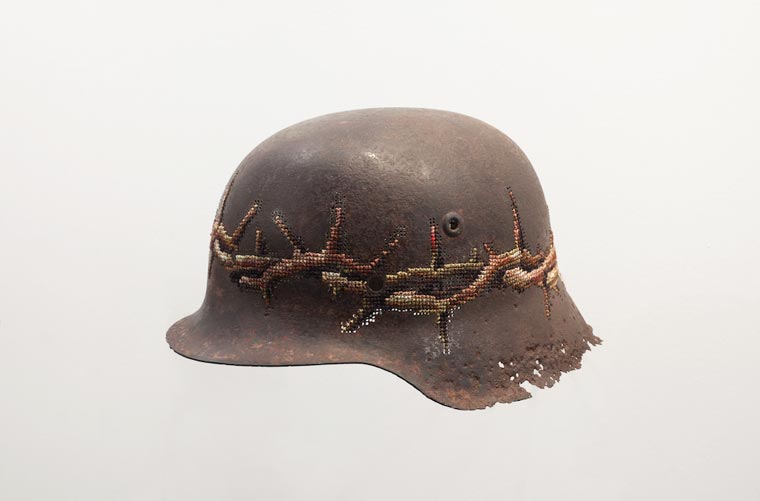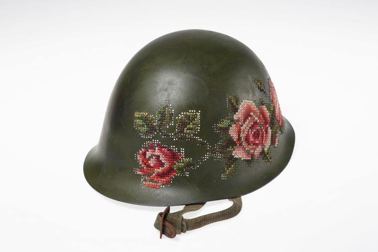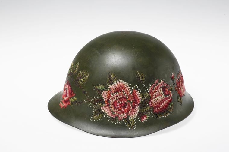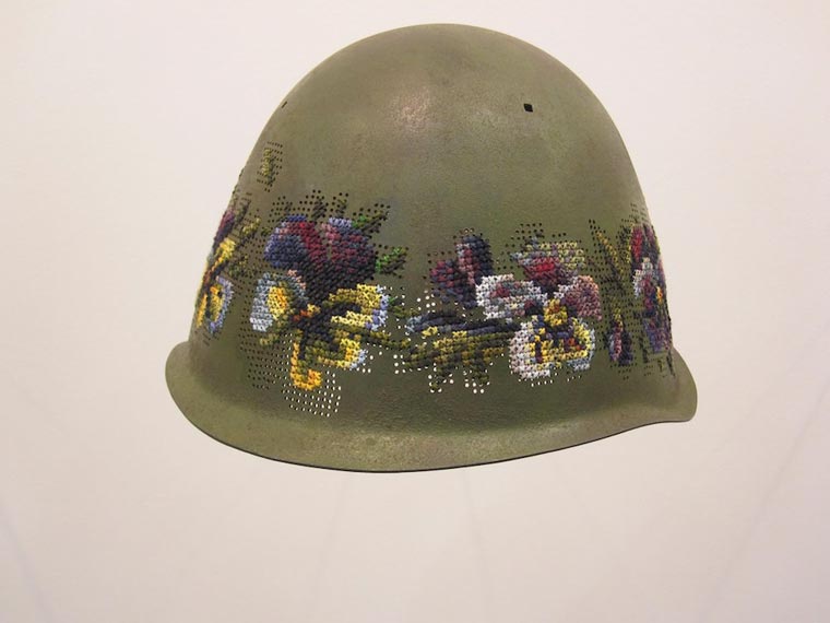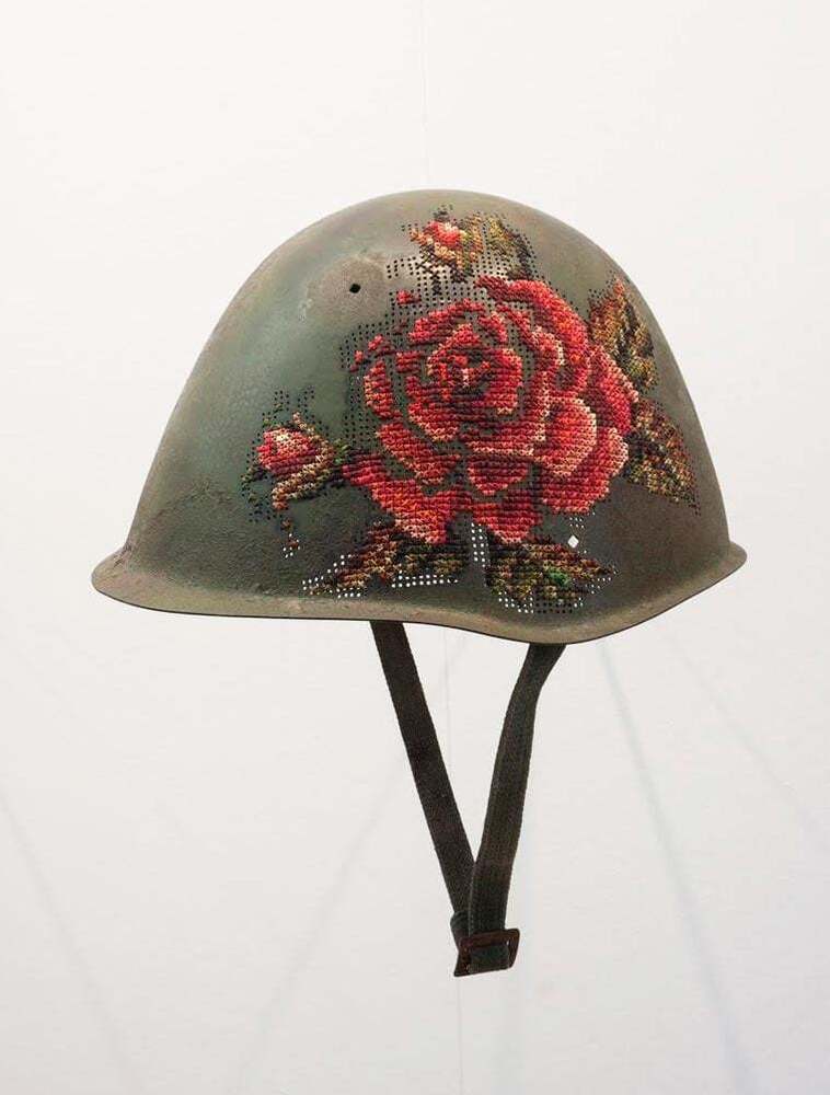 Litvanyalı sanatçı Severija Incirauskaite-Kriauneviciene; çoğunlukla eski miğferlerin, mutfak eşyalarının ve araba parçalarının üzerinde kanaviçe yapmayı tercih etmiş. Böylece ortaya metalin sert ve soğuk yüzü ile çarpıcı bir zıtlık yaratan işler çıkmış. Özellikle miğferler geçmişteki işlevlerinden dolayı daha güçlü bir etki yaratmış. Kendi tarihindeki görevini tamamlamış ve kırılgan hale gelmiş sert materyaller, narin ve renkli çiçeklerle sanat yapıtı olarak yeni bir tarihi yaşamaya başlamış.