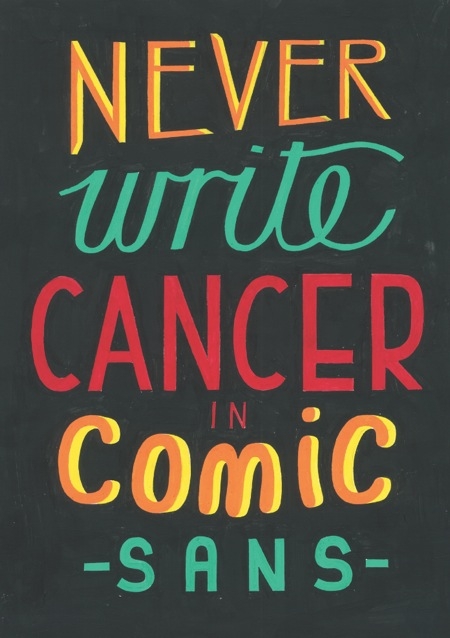 Vincent Connare tarafından yaratılan Comic Sans fontu yirminci yaşını oldukça hayırsever bir şekilde kutluyor. Soapbox & Sons etkinlik ajansından Chris Flack, Renee Quigley ve Jenny Theolin, Comic Sans for Cancer (Kanser İçin Comic Sans) adını verdikleri projede insanları bu fontu kullanarak poster tasarlamaya çağırdı. Amaç hem bu sevilmeyen fontu sevdirmek hem de yararlı kılmak. Renee Quigley ve Jenny Theolin gibi isimlerin küratörlüğünü üstlendiği projeden sağlanan gelir Cancer Research UK’ye bağışlanıyor. Bu enteresan hayırsever işin gerçekleştirileceği mekan The Proud Archivist. 20-24 Ağustos tarihinleri arasında gerçekleştirilecek sergiye 38 ülkeden 500 tasarımcı katıldı. Bunlardan 200 tanesi ise satışta. Proje ile ilgili daha fazla ayrıntıyı buradan takip edebilirsiniz.