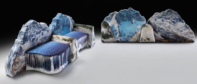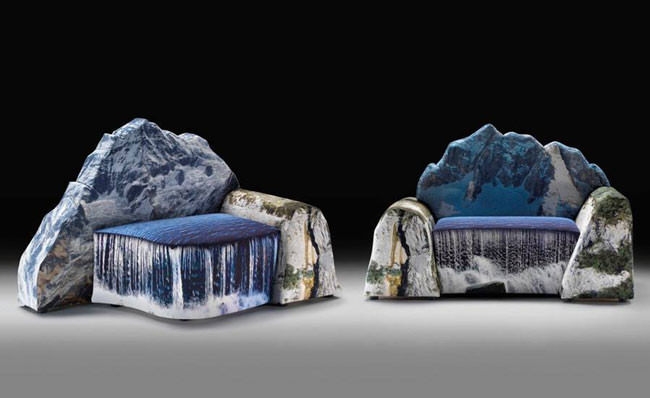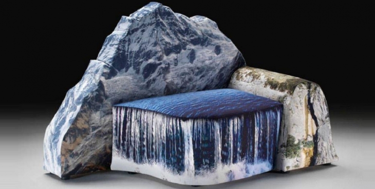 İtalyan mimar ve tasarımcı Gaetano Pesce, “Montanara” koleksiyonunda heybetli dağları, şelaleleri, ağaçları, kayalıkları, tasarladığı kanepelerde birleştiriyor. Üstelik Dağların ya da şelalelerin sadece kumaş üzerine baskılarını değil, kendi formlarını da kullanıyor.