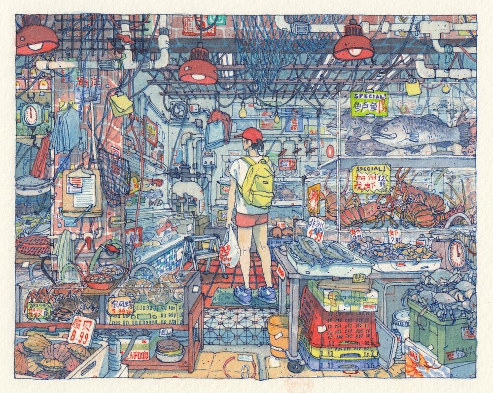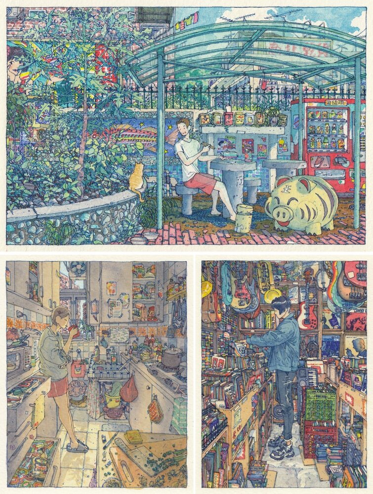 Dijital araçlarla üretim yapan sanatçıların dahi eskiz defterine kurşun kalemle fikirlerini kaydetmekten ya da zaman zaman sulu boya fırçasını eline almaktan geri kalmadığını görebilirsiniz. Bu araçlar sanatçılar içi her zaman çekici. Ortaya çıkan işlerin izleyici açısından da cazip olduğu aşikar. Mimar Kei Endo’nun Japonya’daki otel odalarına dair detaylı çizimleri ve mimar Honami Enya’nın Japon hamamı illüstrasyonları bunun en güzel örneklerindendi. Şimdi ise sulu boya ile kendine özgü bir estetik yakalayan Rain Szeto’nun işleri var karşımızda.
