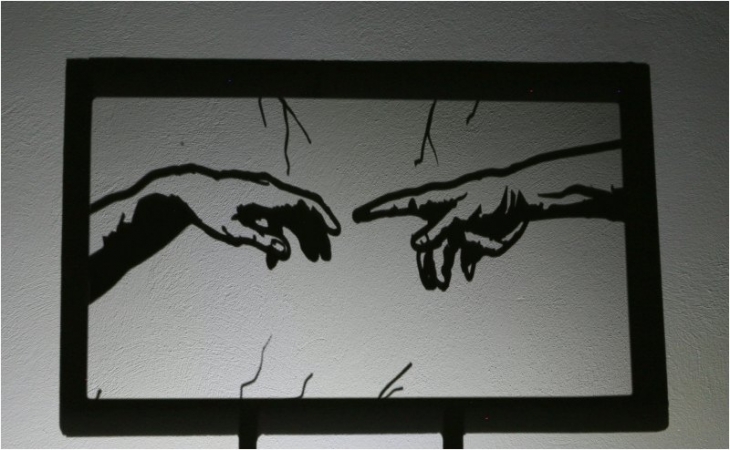 Teodosio Sectio Aurea, bu gölgeyi cismin ötesine taşıyıp anlamlandırıyor. Sanatçı sadece iki araçla Picasso’nun Guernica‘sı, Da Vinci’nin The Vitruvian Man‘i, Michelangelo’nun The Creation of Adam‘ı gibi sanat tarihinin başyapıtlarını yeniden canlandırıyor. 3 boyutlu kompozisyonlar ve gölge.