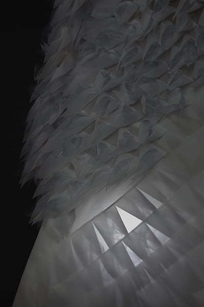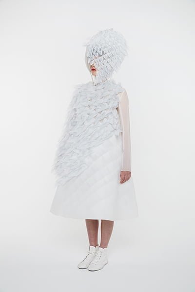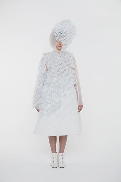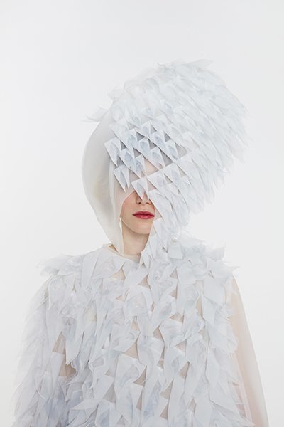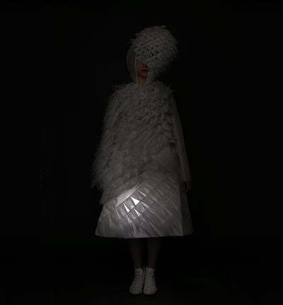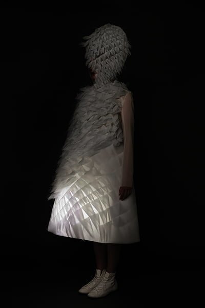 Yüksek teknoloji ürünü şeffaf ipek kumaştan, pamuk örgülerden, PVDF (polyvinylidene fluoride) ve elektronik cihazlardan oluşan elbiseler, sanatın ve teknolojinin bir arada kullanımına dair en güzel örneklerden biri.