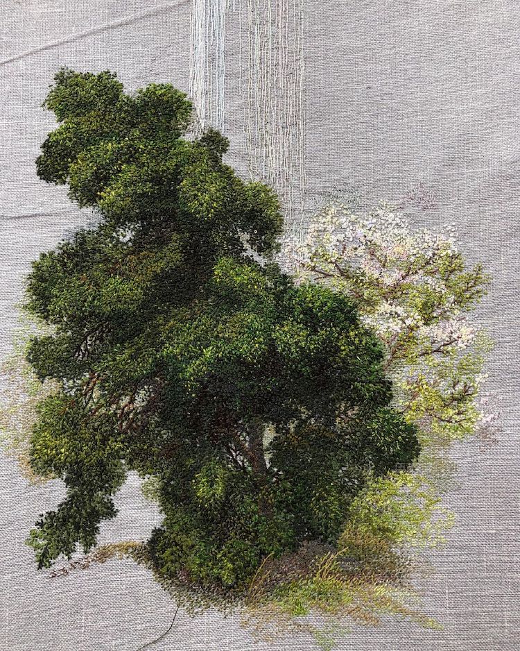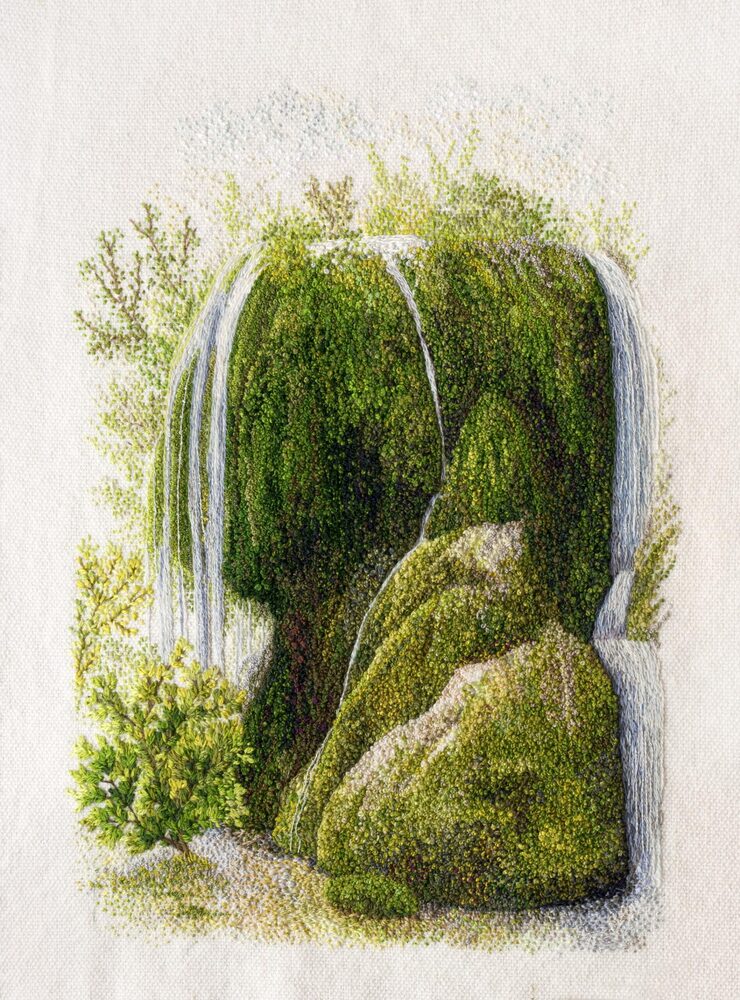 Mimari, portre ve manzara gibi farklı temalarda üretim yapan pek çok nakış sanatçısı keşfettik birlikte. Bunların içinde doğa manzaraları gerçekten de en sık tercih edilen temalardan biri. Vera Shimunia’nın izlenimci manzaraları, Artemis’in polaroid nakış manzaraları ve Zoe Finn’in dağ manzaraları akıllara kazınan örneklerdendi. Katrin Vates de kendi stilinde nakış manzaralar üretiyor.