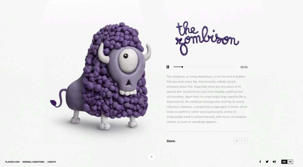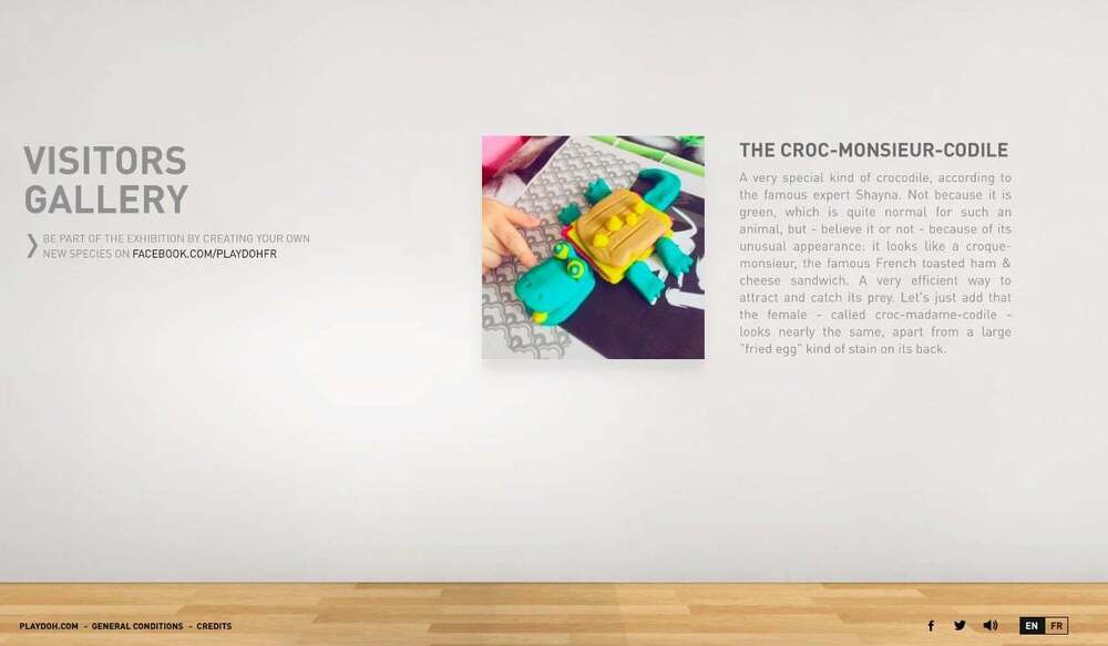 Galeri hem yetişkinlere hem de çocuklara hitap ediyor. Çocuklar için onların merakına yönelik hayvanların şekillerini, renklerini, isimlerini ve hikayelerini içeriyor site. İçerisindeki espri referansları ve komik unsurlar da ebeveynlere hitap ediyor. The Emerging Species kampanyası bir yandan da kille modellenen hayal gücünün yaratıcılığını da çok güzel vurguluyor. Projenin çocukların biraz hayal gücüyle neler yapabileceğini öne çıkarması çok hoş bir detay. Yaratılan her yeni tür Facebook’ta paylaşılabiliyor. Ayrıca ziyaretçiler yeni keşfettikleri türleri paylaşmaları için de teşvik ediliyor. En yaratıcı olanlarsa ziyaretçi galerisinde sergileniyor.