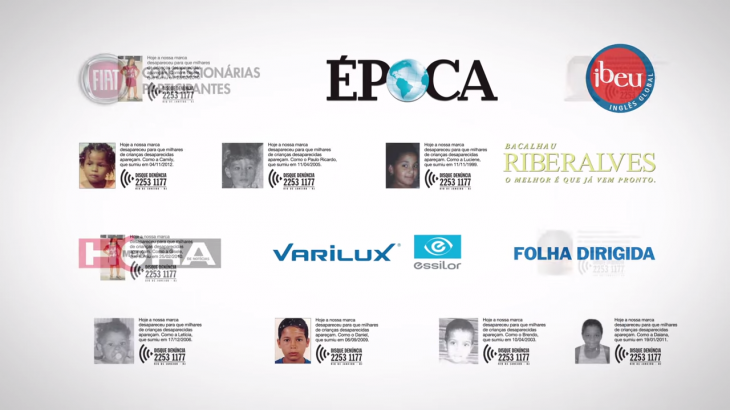 Brezilya’daki kayıp ve kaçırılmış çocuk sayısı yüzbinlerle ifade ediliyor. Ülkenin en büyük acil yardım hatlarından Disque Denúncia, kayıp çocuk fotoğrafları daha çok nasıl yayılır, yüzleri insanların akıllarında nasıl daha fazla kalır diye düşünerek güzel bir kampanyaya ön ayak olmuş. Kayıp çocukları evine döndürme hayaliyle, büyük markaların kapısını şu teklifle çalmış: “Brezilya Çocuk Günü’nde siz kaybolun, çocuklar bulunsun.”
