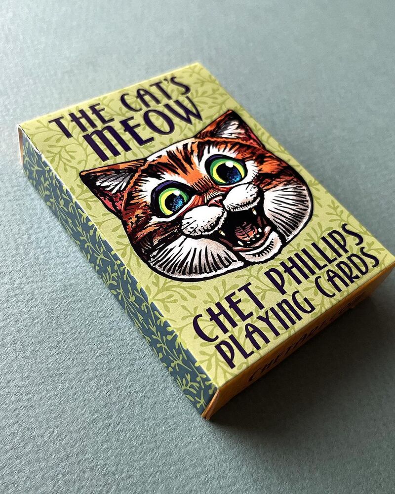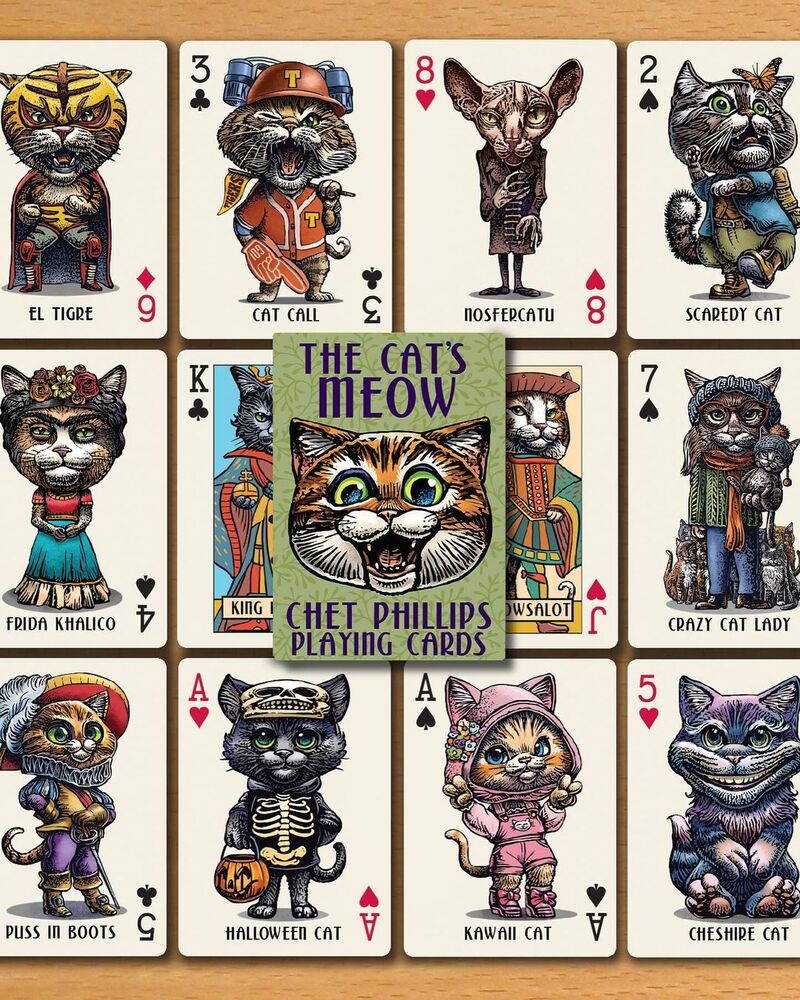 “The Cats Meow” Austin, Teksas’ta yaşayan yetenekli sanatçı ve illüstratör Chet Phillips’in imzasını taşıyor. Kartlarda kedi tutkunlarının halini tiye alan, sanat tarihiyle ya da popüler kültürle ilgili olan isimler yazıyor. Örneğin toplumda “kedici kadın” olarak görülen hayvan dostları da kedi olarak çizilmiş. Frida Kalhlo göndermeli Frida Khalico ve Claude Monet göndermeli Clawed Monet gibi isimler de insana tebessüm ettiriyor.