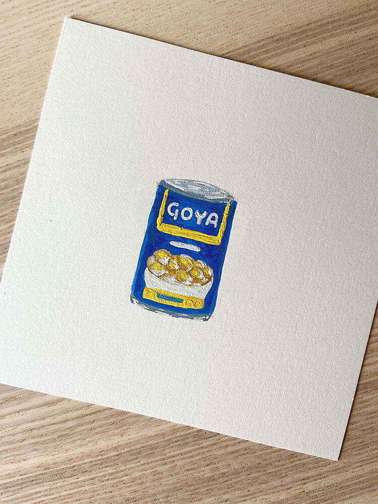 Instagram üzerinde paylaştığı 4×4 inc (10,16×10,16 cm) minicik guaj resimlerde bu ürünleri çizmiş. Arkadaşları, ailesi ve diğer takipçileri bu zor zamanlara dair küçük bir hatıra olarak bu resimlerden satın alıyor. Her biri 30 dolar ve gelirin yarısını Feeding America‘ya bağışlıyor.