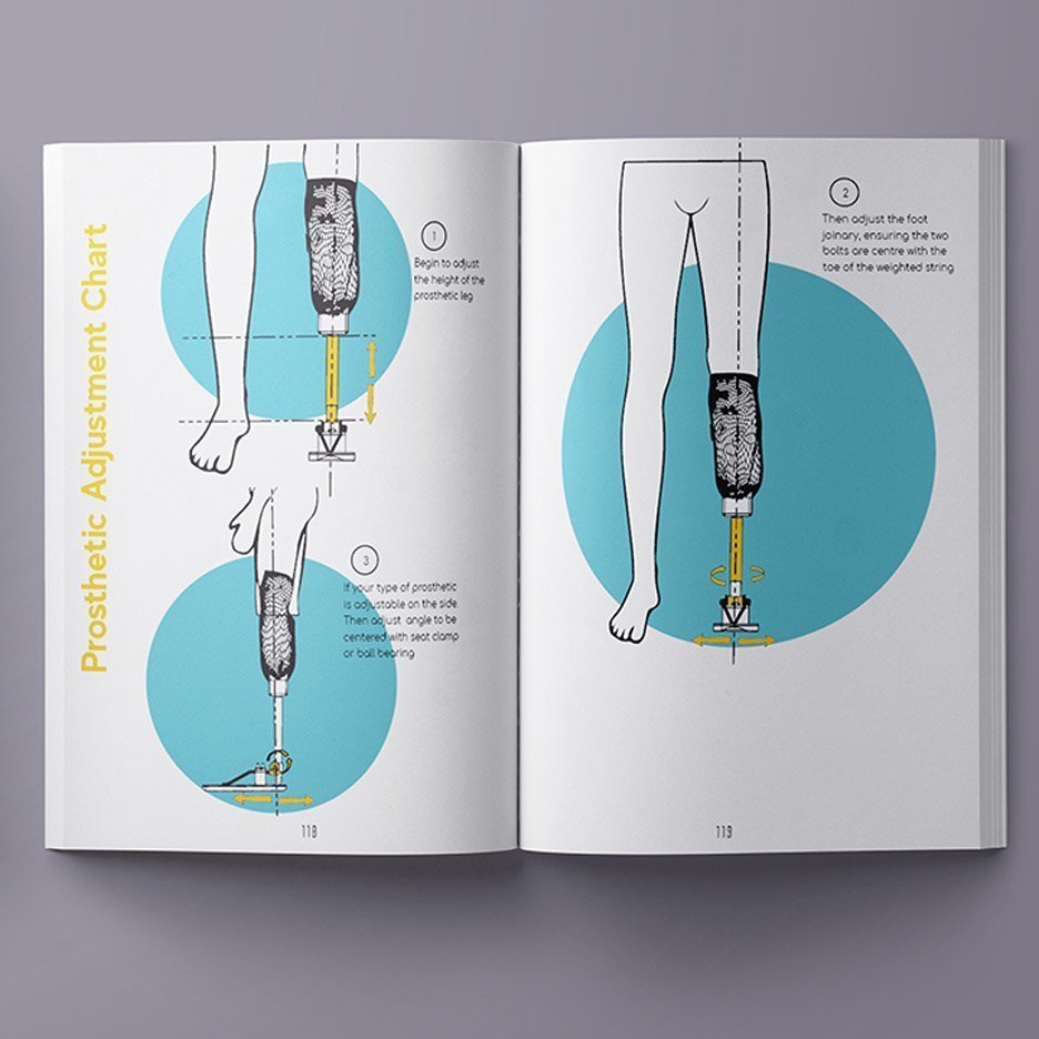 Riny’nin yüksek lisans projesi, farklı ihtiyaçlara uygun üç farklı kendin yap bacak protezi ve illüstrasyonlu bir yapım kılavuzu içeriyor. Tasarımcı, kılavuzun çevrimiçi olarak kullanıma sunulmasını ve ayrıca yerel işletmeler ve STK’lar aracılığıyla dağıtılmasını hedefliyor.