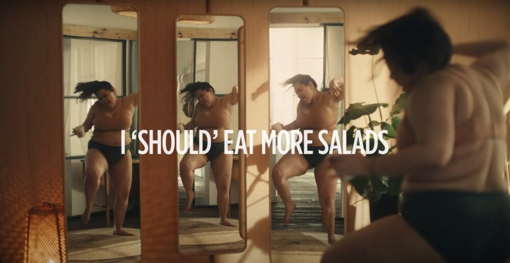 Kilo vermeli misin? Öğünlerde daha fazla salata yemek veya tatlıyı atlamak mı gerekir? Daha fazla spor yaparak fit bir vücuda mı sahip olmalısın? Kendinizi frenlemeye bir son verin mesajını iletmek isteyen Halo Top, müşterilerinin kendilerine bedenleri konusunda bir baskı yapmamaları gerektiğini hatırlatıyor. Deloitte Digital’in sahip olduğu Heat NY tarafından yaratılan Stop Shoulding Yourself reklam filminde atletik vücuda sahip idealleştirilmiş bir model yerine Kolombiyalı büyük beden modeli Maria Jimenez Pacifico tercih ediliyor.