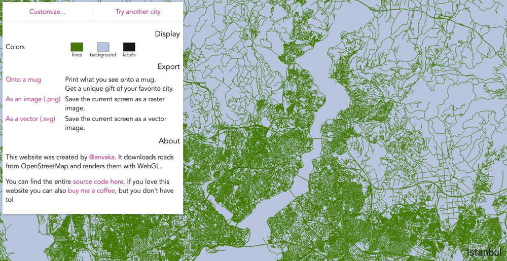 GitHub üzerinden başka kullanıcılar Andrei Kashcha’nın aracını kullanarak şehir içi yolları üzerinden farklı çalışmalar geliştiriyor. Twitter kullanıcıları ise bu keyifli haritalandırma aracı kullanarak dünyanın farklı noktalarındaki kentlerin yol ağlarını özelleştirerek paylaşıyor. Siz de buradan istediğiniz şehrin sokak haritasını çıkarabilirsiniz.