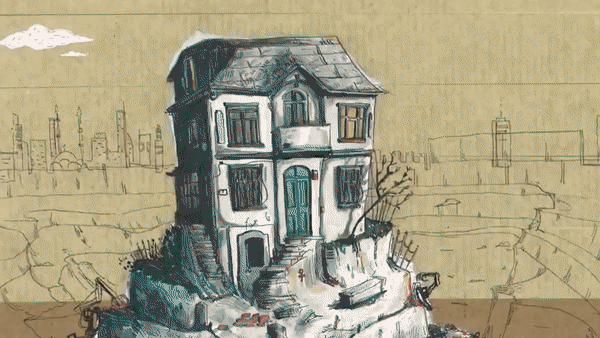 Gizem Güvendağ, kentsel dönüşümle ilgili çalışmalarını şöyle açıklıyor: “Son zamanlarda özellikle İstanbul’da, yaşadığımız kentsel dönüşümün bir sonucu olarak inşaatlardan ve hafızamız olan yapıların yıkılmasından etkilenerek ortaya çıkardığım iki projem bulunuyor. İlki (Islands On The Sky) mahalle mahalle dolaşarak fotoğrafladığım tarihi evlerin illüstrasyonunu ve GIF animasyonunu yaptığım projemdir. İllüstrasyonlarda evleri mahallerinde son kalan evmiş gibi betimliyorum. Animasyonlarımda o evlerde olabilecek sürreal durumların oluşumunu anlatıyorum. Diğer projem ise “Çarpık şehirleşmeye ve inşaata maruz kalmamız hayal kurmamıza engel mi?” sorusuna cevap olarak yaptığım bir illüstrasyon serisi.”