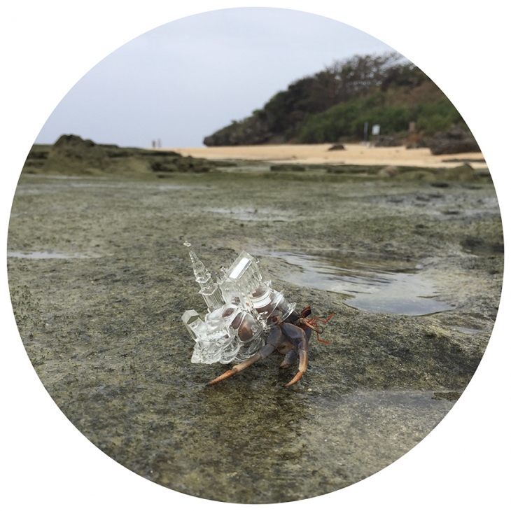 Altı yıldır bu hedefi işlerinin merkezine koyan Aki Inomata, son olarak üç boyutlu baskıdan beyaz bir kilise figürünü yengeçlere giydirdi. Inomata, yengeçler için yarattığı habitat figürlerini seçerken insanlar için taşıdığı kültürel değerlere referans vermeyi de unutmuyor. Zira burada, Hıristiyanlık oranı %1 olan Japonya’da insanların hayatında kilisenin sadece nikah dairesi vazifesi gördüğünü ve Tokyo’daki kiliselerin de farklı tarzları birleştiren mimariye sahip olduğu detayı vurgulanıyor.