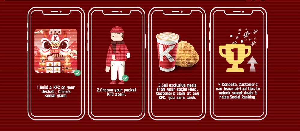KFC China ve dijital ortağı Accenture Interactive-Hocomm arasındaki bir iş birliğinin sonucunda ortaya çıkan KFC Pocket Franchise markanın dijital dönüşümünde ne denli değişimler yapabileceğini kanıtlıyor. KFC’nin Pocket Franchise kampanyası SXSW 2020’de Interactive Innovation Awards yarışmasının New Economy kategorisinde finalistler arasına bulunuyor.