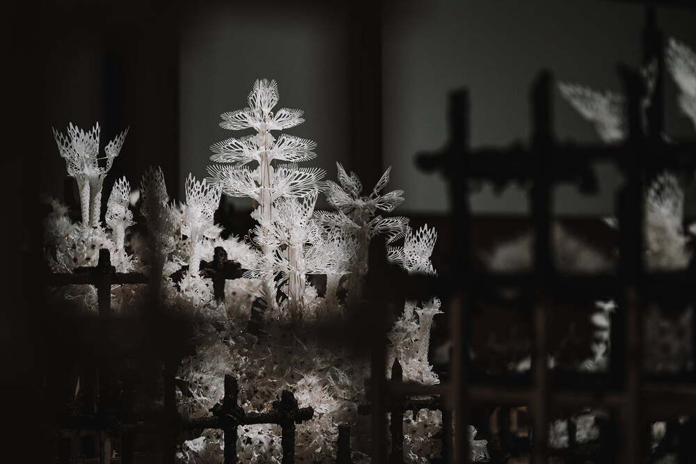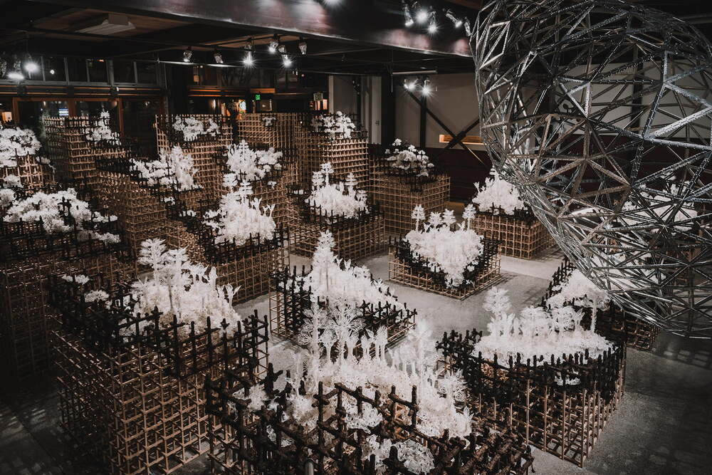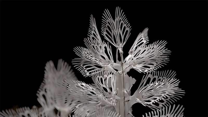 Casey Curran çiçek formundaki kinetik heykelleriyle tanınan bir sanatçı. Pirinç telleri kullanarak yaptığı kinetik çiçekleriyle oldukça ses getirmişti. Sanatçı Parable of Gravity adlı yeni yerleştirme projesinde ise kağıt kesme sanatını heykellerine taşıyarak büyüleyici bir çiçek bahçesi yaratmış.