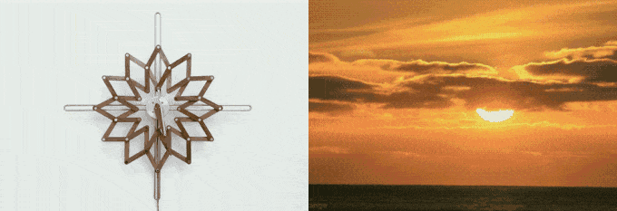 Solstice (gün dönümü), Londra merkezli tasarım stüdyosu Animaro‘dan Matt Gilbert tarafından tasarlanan ahşap bir saat. Hem saat hem de evinizin ya da ofisinizin havasını değişirecek kadar dikkat çekici bir dekorasyon nesnesi olan Solstice, gün boyunca farklı görünümlere bürünüyor. Örneğin güneş en yüksek noktada olduğu zaman en geniş formu alana kadar genişliyor ve güneş en düşük seviyeye ulaştığında daralıyor. Bu meditatif hareket için tasarımcı doğadan, özellikle de bir çiçeğin daha fazla güneş ışığı absorbe edebilmek için yapraklarını açmasından ilham almış. Böylelikle her saate baktığında gerilen ve ne kadar koştursa da zamanın akış hızını bir türlü yakalayamayan insanı rahatlatmayı amaçlıyor aslında.
