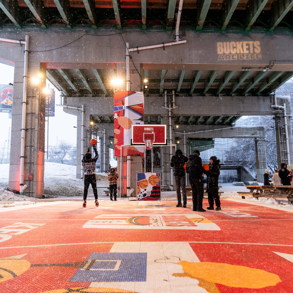 Cuma ve Cumartesi akşamları LiveNation’dan DJ performanslarının gerçekleştirileceği sahada, ayrıca Toronto Raptors oyuncusu Gary Trent Jr. da katılımcılara koçluk yapacak. Oynamak isteyen basketbol severler, sahayı saati 5 dolardan kiralayabilecekler. Elde edilen gelir, genç yetenekleri keşfetmek için çalışan bir basketbol organizasyonu olan Jump Thru Hoops’a aktarılacak.