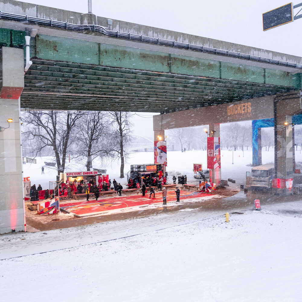 Mevsim şartları gereği kış açık hava sahaları için sezon dışı anlamına gelirken, KFC Kanada hayranlarını ve basketbol severleri “dünyanın ilk kış şartlarına uygun açık hava basketbol sahası” olarak tanıttığı Kanada’nın en işlek otoyollarından biri olan Gardiner Expressway’in altında bulunan yere davet ediyor.