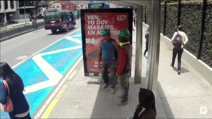 Markanın mola vermek üzerine kurulu son çalışması ise masaj yapan bir açıkhava panosu. Kolombiya’nın Bogota şehrinde otobüs duraklarına yerleştirilen panolara sırtınızı yasladığınızda titreşimleriyle bir güzel masaj yapıyor.