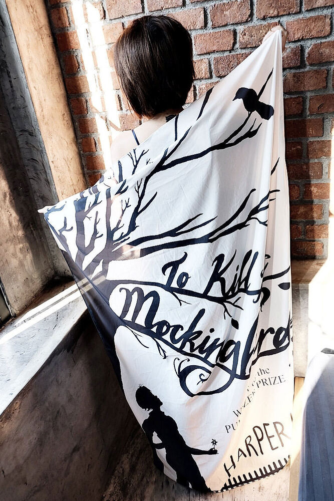 Tayland merkezli Etsy mağazası Fresh Comfy klasik veya popüler kitapların unutulmaz kapaklarını şal, eşarp koleksiyonu halinde kitap severlerle buluşturuyor. Artık çok sevdiğimiz kitaplarımız bittiğinde onlardan bir parçayı yanımızda taşıyabileceğiz. Hazırlanan koleksiyonda çoğu kitabın kapağı (Aşk ve Gurur, Küçük Prens, Peter Pan, Sherlock Holmes…) şalları süslerken koleksiyonun Harry Potter ve Yüzüklerin Efendisi kitaplarına ayrılan parçalarında ise kitap kapakları yerine hikayelerin geçtiği haritalara, Küçük Prens ve Alice Harikalar Diyarında parçalarında ise kitap kapaklarının yanında unutulmaz metinlerine yer veriliyor.