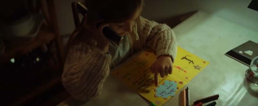 Noel akşamı eşinin hediye etmiş olduğu telefonu paketinden çıkarıp eline aldığında ise yine evden bir arama geldiğini gören baba kimselere çaktırmadığını düşünerek bir köşeye çekiliyor ve telefonu açıyor. Bir süre sessizce bekledikten sonra arkasından kızının Noel’ini kutladığını duyuyor. Baba ile kızın sarılma anından küçük kızın tüm süreç boyunca Noel Baba’nın babası olduğunu fark ettiği anlaşılıyor. Klasik Noel hikayelerine benzeyen reklam filmi en büyük hediyelerin paylaşılan hediyeler olduğunu vurgulayarak sona eriyor.