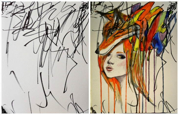 Kanadalı sanatçı Ruth Oosterman iki yaşındaki kızı Eve’nin eskiz tadındaki çizimlerine hayat veren bir başka yaratıcı anne. Kızının karalama gibi görünen çalışmaları annesinin elinde müthiş resimlere dönüşüyor. İşin güzel yanı Oosterman bunu yaparken kızının çizgilerine pek müdahale etmiyor, sadece o çizgilerin etrafında çalışıyor. Böylece anne ile kızın hayal gücünden ortak bir çalışma çıkıyor. Ruth bu çalışmalarını ve daha fazlasını blogunda videolarla anlatıyor.