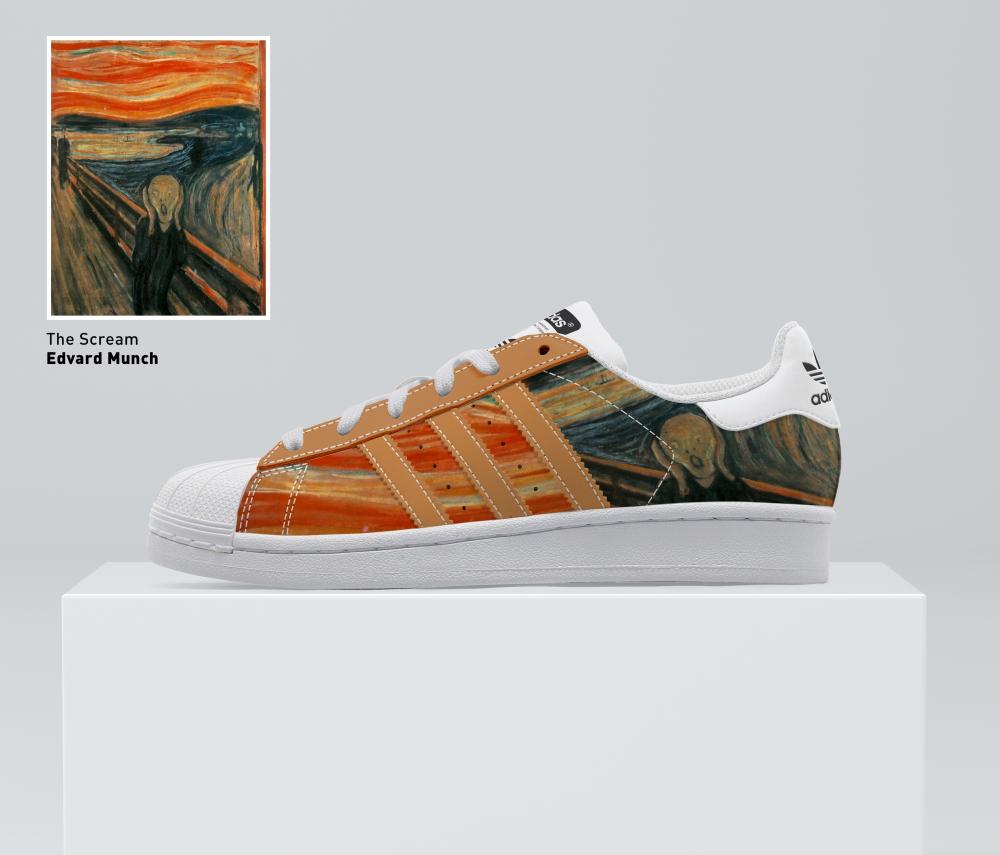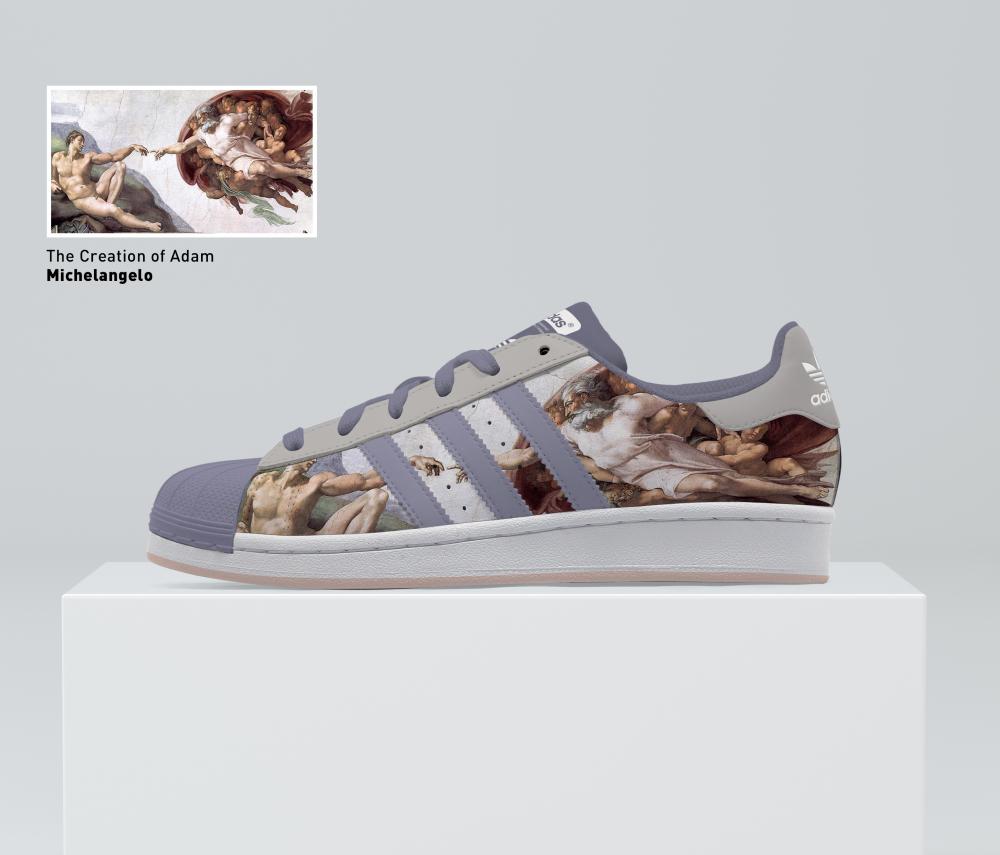 Sanata ve klasikleşmiş eserlere duyduğu kişisel ilgiden yola çıkan tasarımcı, özellikle sanatsever ve sanatla ilgilenen kişilere ithaf ettiği projesi için Adidas ve Nike gibi sokak modasında öncü spor markalarının bile kendi ikonik tasarımlarına yaratıcı dokunuşlar katmalarından cesaret almış. Ve seçtiği klasik tabloları Adidas’ın “klasik” olarak adlandırılabilecek modeli Superstar’a uygulamaya karar vermiş.