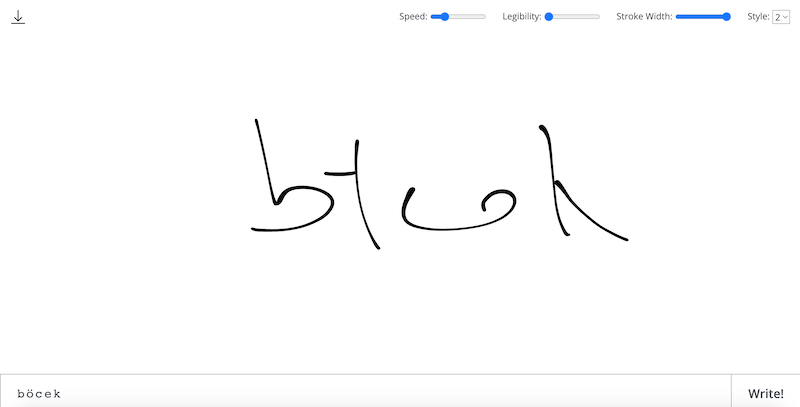Calligrapher.ai, ücretsiz ve oldukça kullanımı kolay bir araç. JavaScript ve yapay sinir ağları kullanılarak yaratılan bu araç, klavye ile girdiğiniz bir metni el yazısına dönüştürüyor. Kullanıcı; hız, okunaklılık ve çizgi kalınlığı ayarlarını kontrol edebiliyor. 9 farklı yazı stili arasından da seçim yapabiliyor.