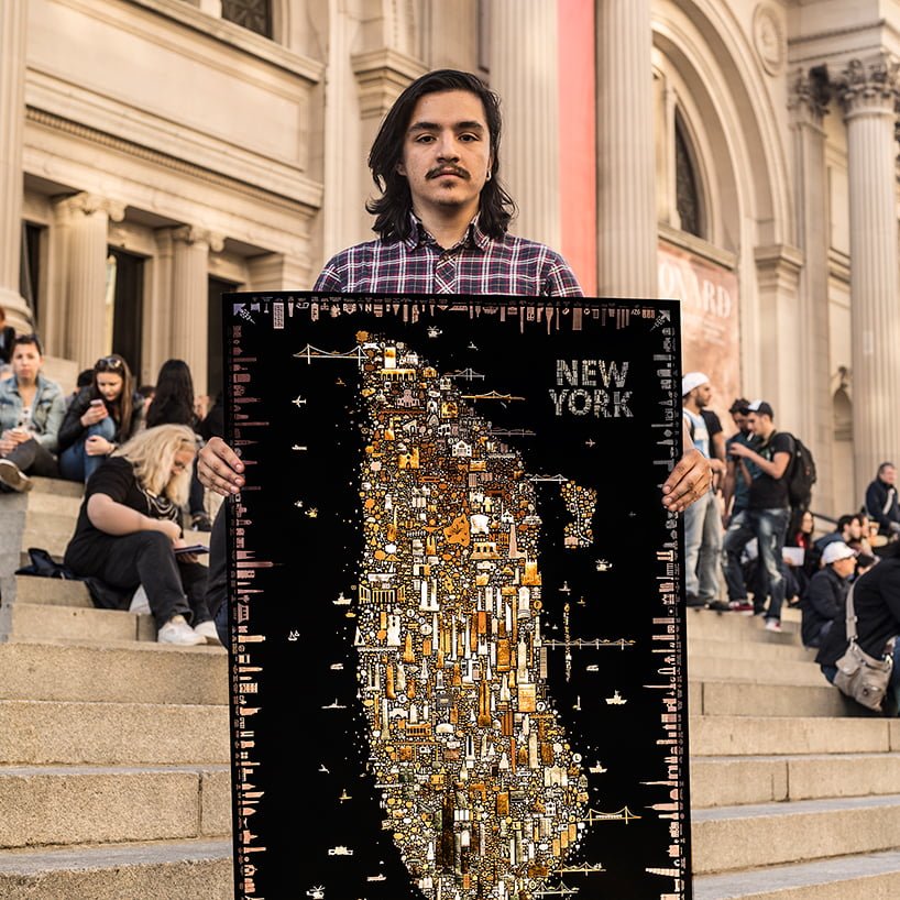 Kadife siyahı ve yüksek kalitede kırılmayan kağıda basılan bu poster (66cm x 99cm), karanlıkta en az New York’un kendisi kadar parlıyor. Posterde New York’a özgü 600’den fazla simge bulunuyor. Bu simgeler arasında binalar, kültür enstitüleri, yazarlar, spor takımları, süper kahramanlar, azizler, ünlüler ve şehir efsaneleri gibi New York’u temsil eden her şey bulunuyor.