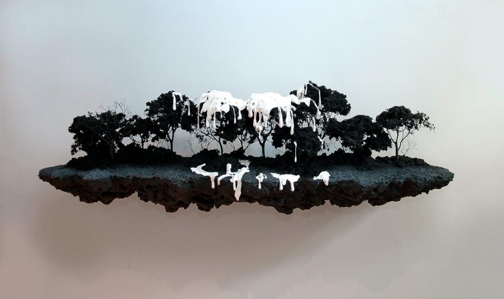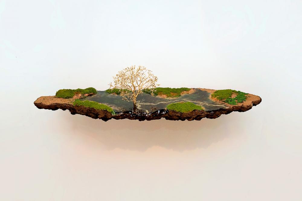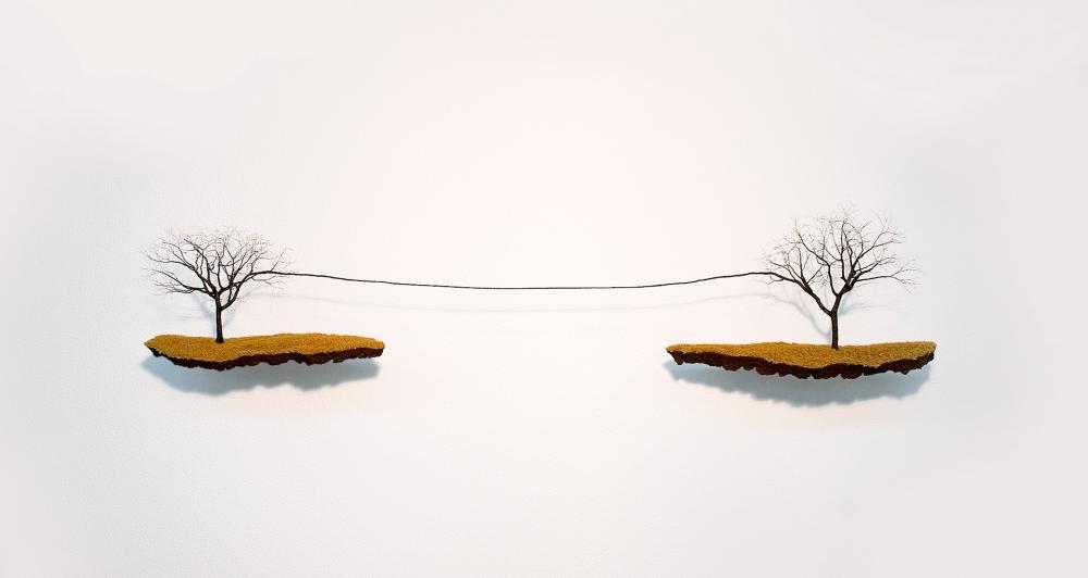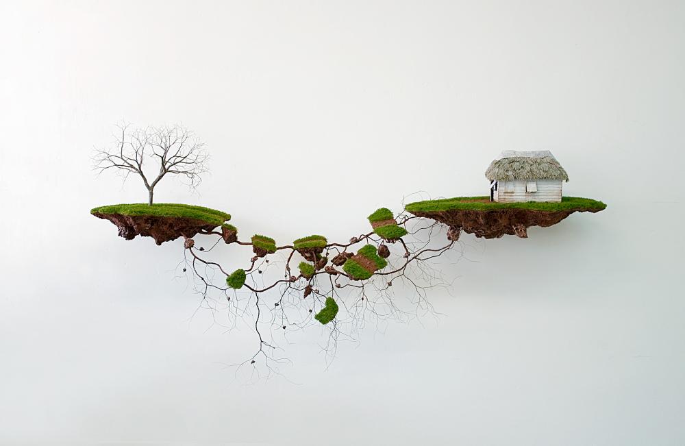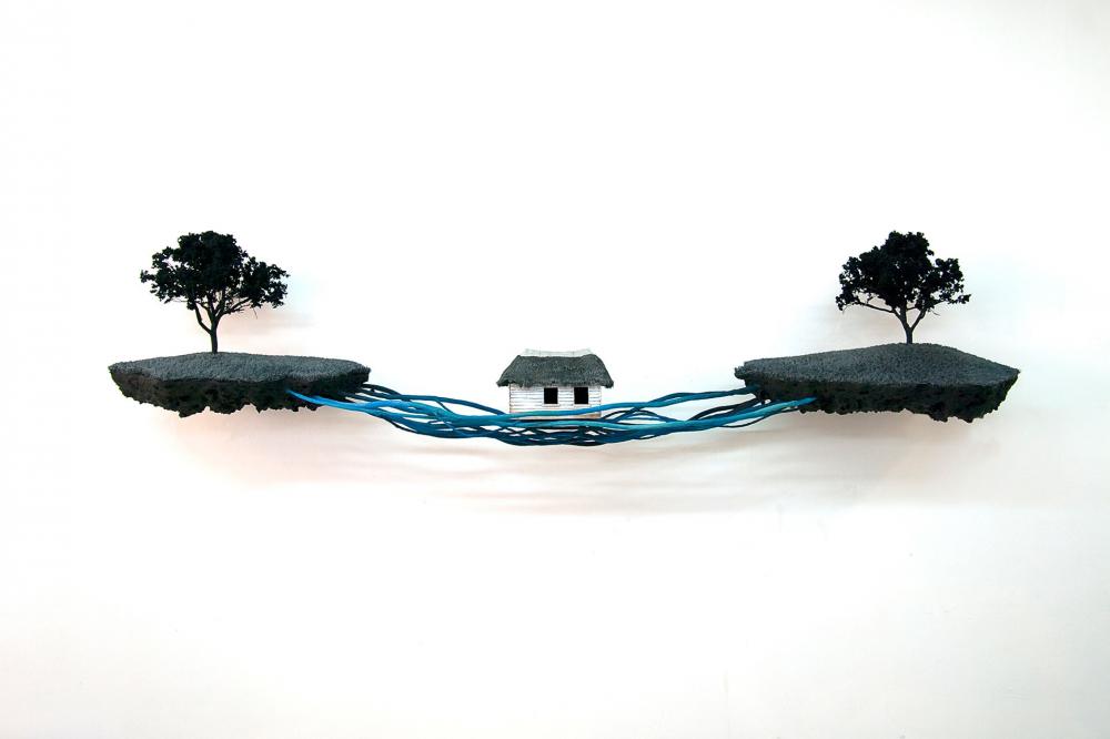 1962 yılında Havana’da dünyaya gelen Jorge Mayet, Küba’dan sürgün edilmiş bir sanatçı. Şu an, İspanya’nın en büyük ada kenti Mallorca’da yaşayan Mayet, çalışmalarını da burada sürdürüyor. Kağıt, kablo, tel gibi çeşitli malzemeler kullanarak ortaya çıkardığı çalışmalarda kablolarla birbirine bağlanan, havada asılı duran kara parçaları ve toprağın altından fışkıran ağaç kökleri sanatçının doğup büyüdüğü vatana, kökenlerine, kültürüne ve kimliğine duyduğu özlemi yansıtıyor.