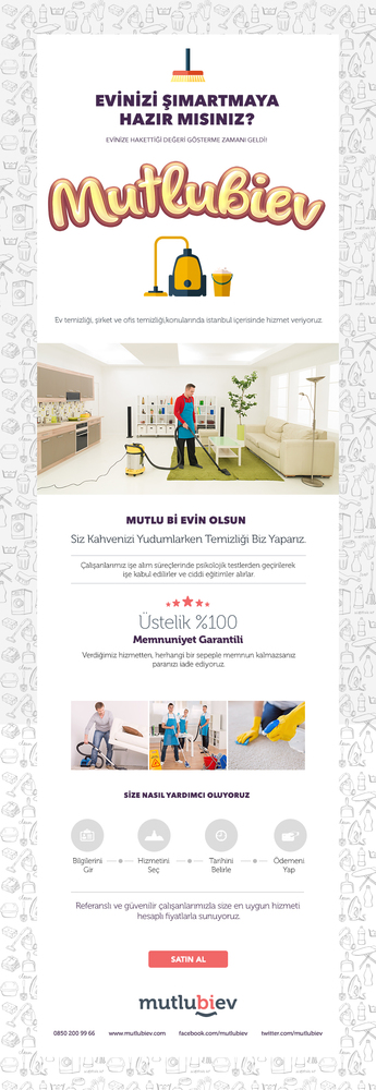 Tayga: 2016 yılı sonunda mutlubiev aylık 1500-2000 arası farklı ev temizliyor olan, Türkiye’nin bir çok farklı şehirinde hizmet veren bir online temizlik platform olmayı hedefliyor. Ev temizliğinin yanı sıra farklı hizmetlerle de evlerin vazgeçilmez yardımcısı olacağız.