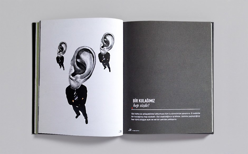 Tunç: İşimiz stratejik ve yaratıcı çalışma disiplinlerinin birlikte yürütülmesini gerektiyor. Bir markanın kimliğini tasarlarken aslında o markayı benzersiz kılacak genetik kodları oluşturuyoruz. Dolayısıyla ekrana değil stratejiye bakarak tasarım yapıyoruz. Bu perspektiften bir marka isminin sadece kısa ve akılda kalıcı olması ya da bir logonun göze hoş görünmesi yeterli olmuyor. Üretilen yaratıcılığın mutlaka stratejik ve kavramsal bir zemine oturması gerekiyor. Bunu sağlamak için de belirli metodoloji ve araçlar kullanıyoruz.