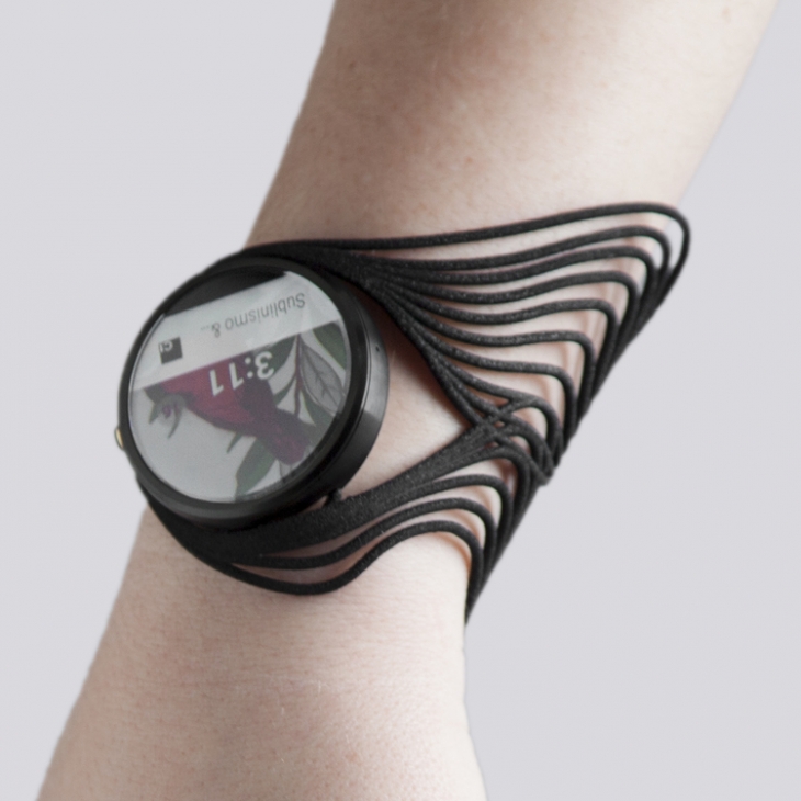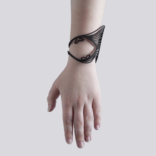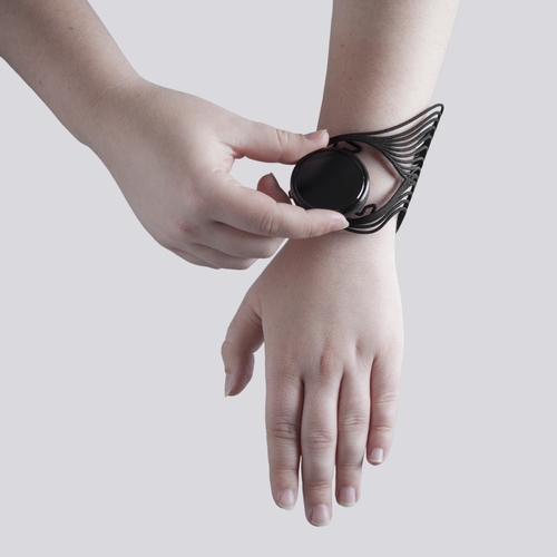 Autodesk Research iş birliğiyle gerçekleştirdiği Tactum adlı projede tasarlanan dijital aksesuar kolunuza yansıtılıyor. Kolunuz üzerine taktığınızda formla oynayıp şeklini belli derecede değiştirebileceğiniz gibi dijital tasarımın 3b modelini de alabiliyorsunuz. Algoritması sayesinde de dijital formu ister salt giyilebilir isterse saat kayışı olarak kullanabiliyorsunuz.