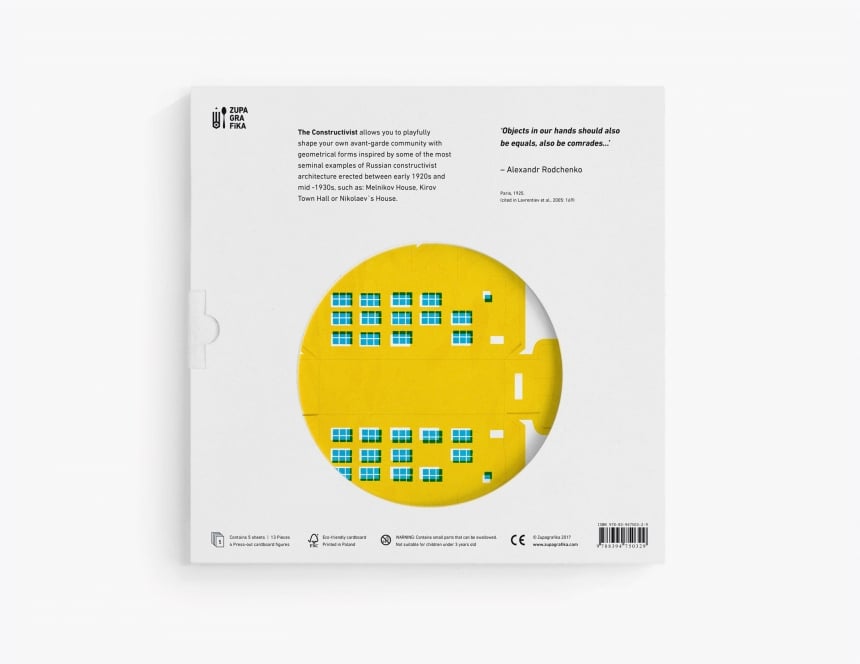 Tasarım stüdyosu Zupagrafika, The Constructivists adı altında Rus yapısalcı mimari stilini yansıtan bir oyun kiti tasarladı. 4 ayrı karton parçadan oluşan oyun kiti ile binaları oluştururken makasa ya da yapıştırıcıya gereksinim duyulmuyor.