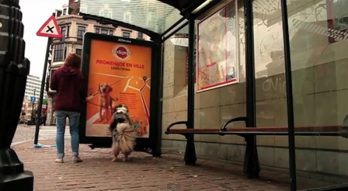 Tüm reklam mecraları insanları hedef alır, bu ise başka. Otobüs duraklarına giydirilen reklam panoları, köpek sahiplerine önerilen günlük 30 dakikalık yürüyüş rotası için yardımda ve rehberlikte bulunuyor.